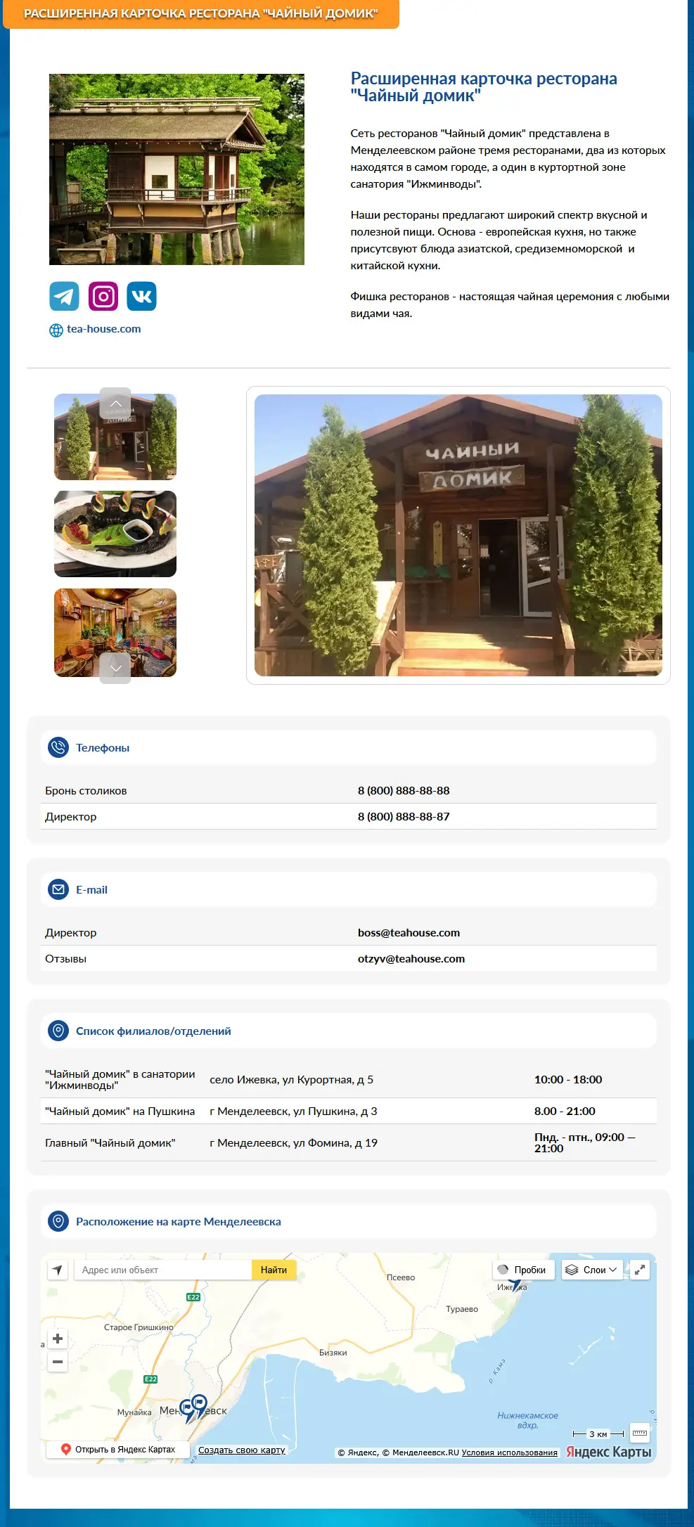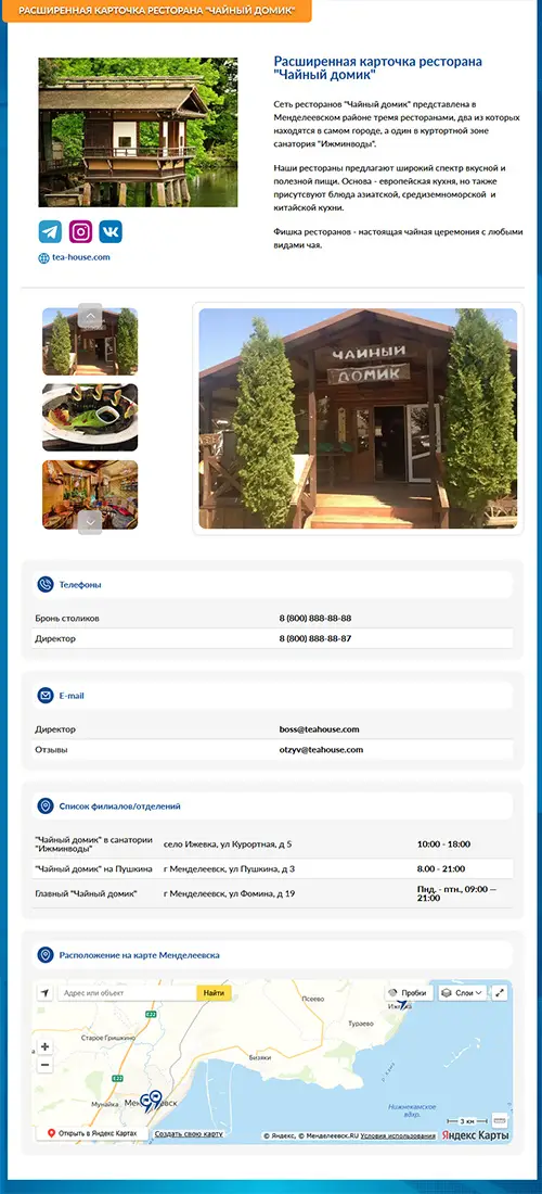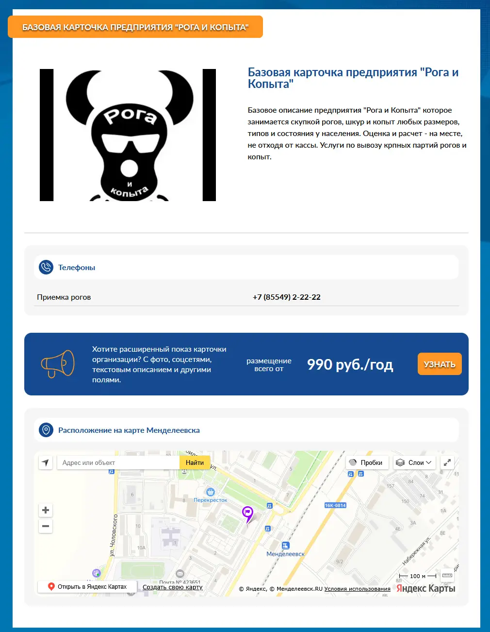 Размещение организации в каталоге на сайте Менделеевск.RU