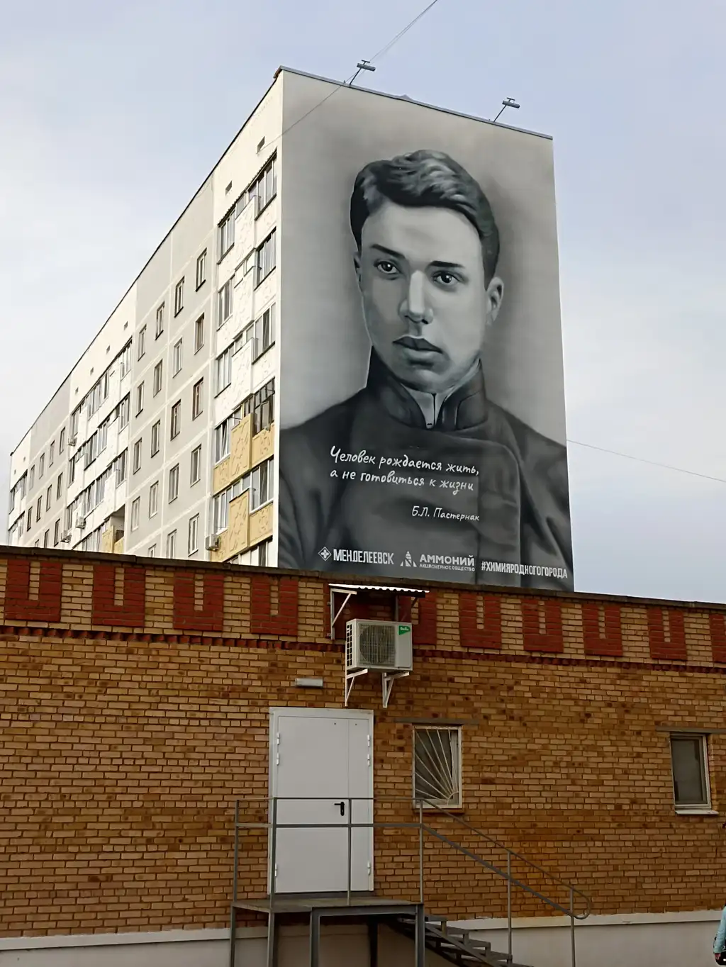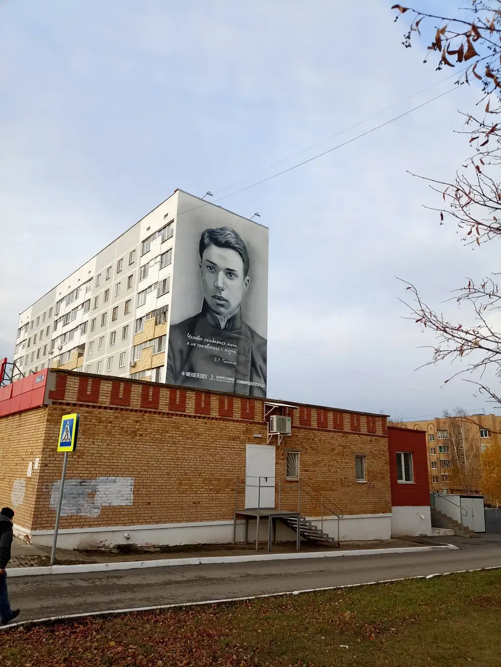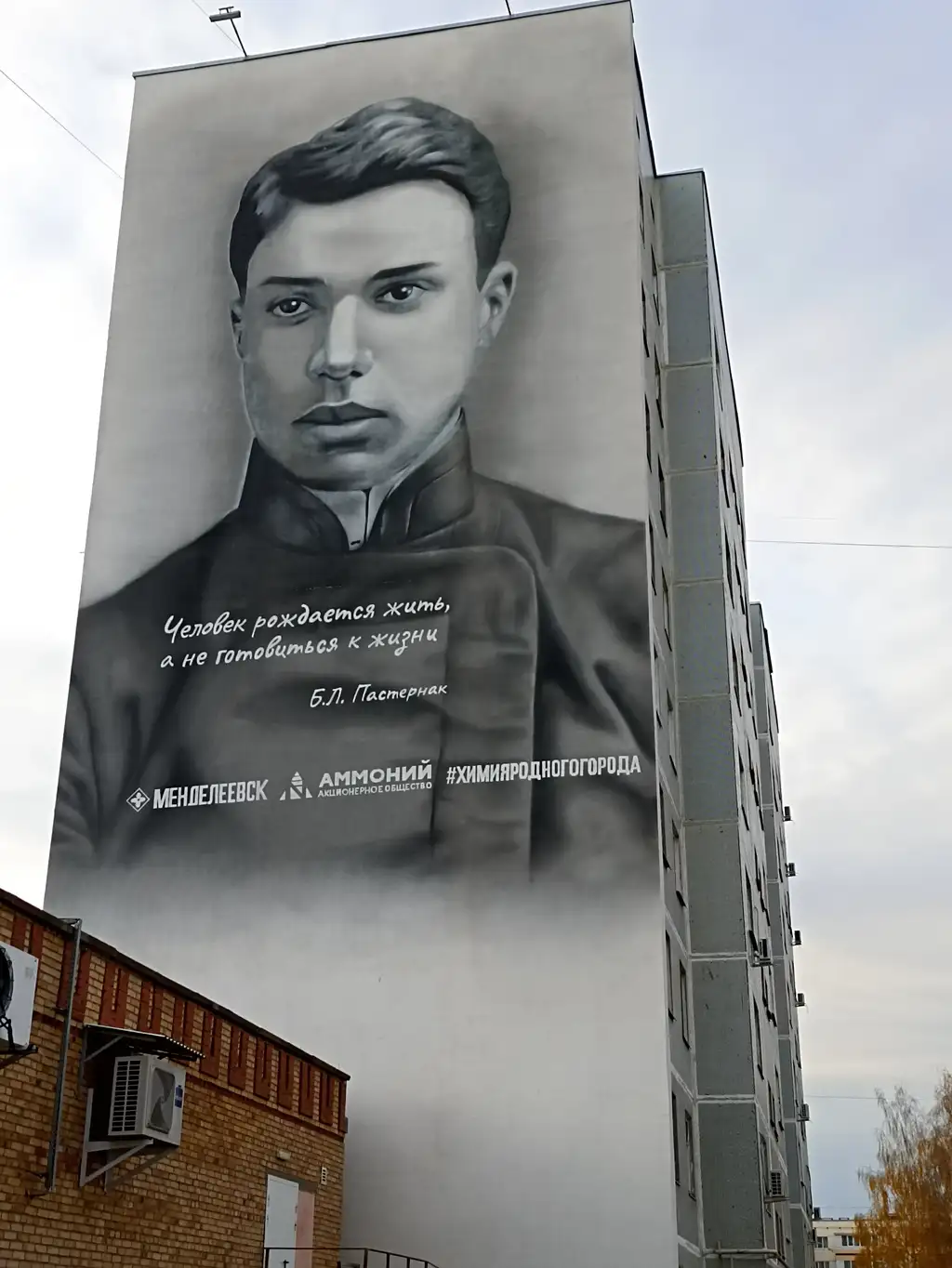 Один из лучших муралов Менделеевска. Своего рода визитная карточка 3-го микрорайона, находится на 9-ти этажке, очень хорошо виден при движение по дороге в Набережные Челны.