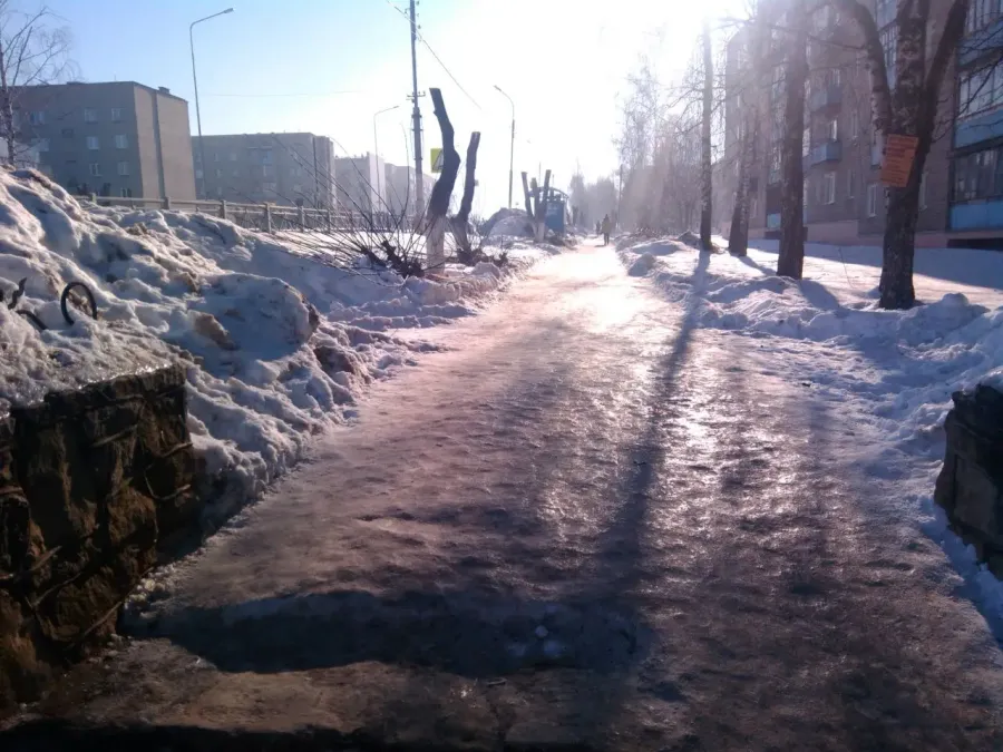 Неординарные погодные условия в этом году стали причиной того, что во многих дворах Менделеевска таявший лед в марте быстро замерз и покрыл толстым слоем льда проезжую часть и тротуары. Люди и водители машин не испытали особой радости от бесплатного катка на территории города. Тут бы посыпать оперативно лёд песком, но видимо – понятия об оперативности у коммунальных служб отличаются от общепринятых, или же были какие то другие причины. Тем не менее, в некоторых дворах и на некоторых направлениях – люди осваивали катание без коньков на протяжении нескольких недель.