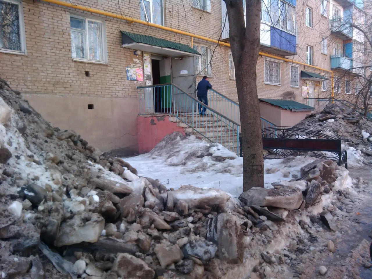 После неоднократных звонков жителей в управляющую компанию, на очистку придомовых дорог вышла техника – экскаваторы, погрузчики. Дороги стали пригодны для проезда, но как всегда случился «недодел» - вывозить убранный лёд никто не стал, вместо этого у подъездов, под деревьями и просто на обочинах дорог появились огромные грязные горы снега и льда. Это замечательно видно по улицам: Ушкова, Бурмистрова, Профсоюзной и другим.