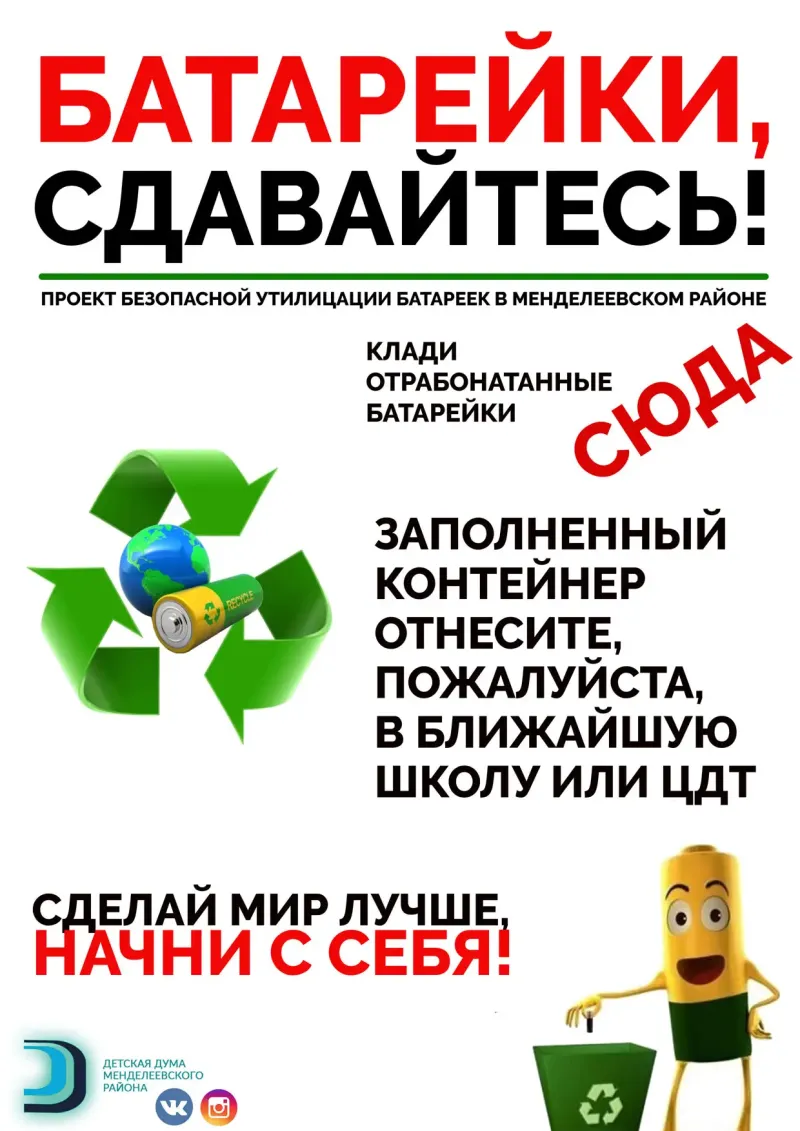 - Разместить тару в подъезде. (Рекомендуется так-же разместить фото с геолокацией и хэштегом #батарейкисдавайтесь на своей страничке в социальных сетях)