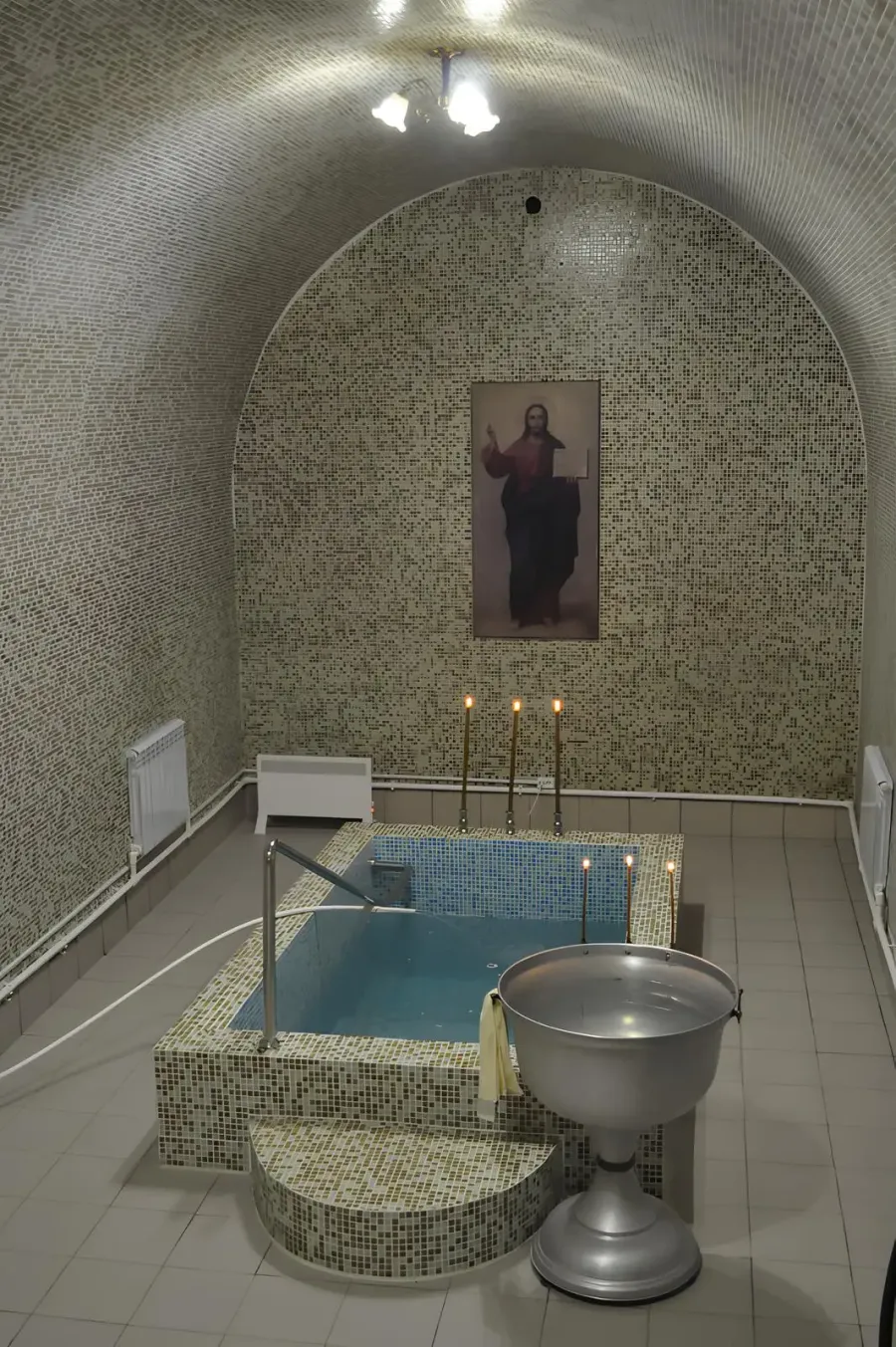 Располагается Крещальня в подвальной части храма с входом через храм. В специально оборудованном для крещения месте храм нуждался уже давно. И вот, благодаря усердию старосты Александра Мессеева, благотворителей Олега, Романа, рабочих – Анатолия, Наталии, Татьяны и других не равнодушных людей, эту идею удалось воплотить в жизнь.