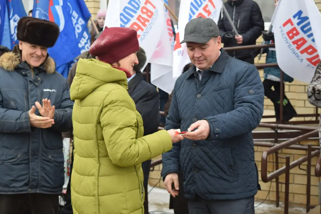 Приятным аккордом в канун новогодних праздников стало долгожданное новоселье более чем для 80 семей менделеевцев. В минувшую субботу состоялось мероприятие по заселению 84-квартирного дома. Глава Менделеевского района Валерий Чершинцев торжественно вручил ключи от квартир нового дома семьям Ветеранам Великой Отечественной Войны, семьям заселяющимся по программе “Переселения граждан из аварийного жилья”, а так-же семьям детей сирот и семьям участникам программы “Социальная ипотека”.