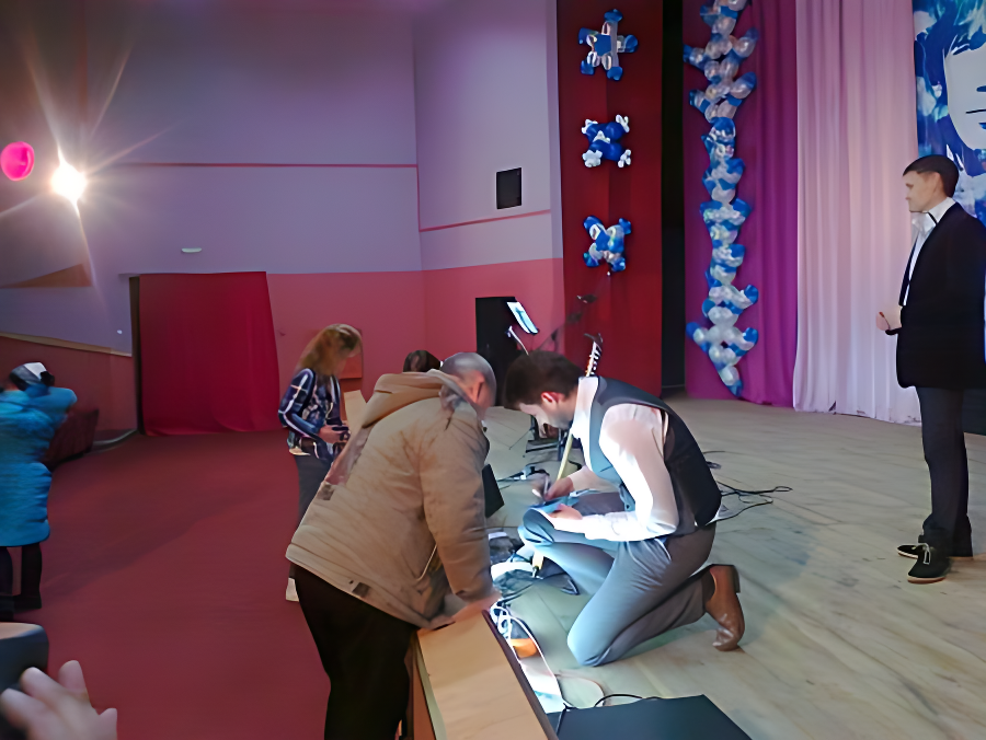 Концерт с приятной гитарной музыкой, чистым звуком и приятным голосом солиста тандема - Евгения Залалиева, и виртуозной игрой - Юрия Гершмана не оставил равнодушным немногочисленных зрителей в празднично украшенном зале РДК "Юность". В течение всего концерта, ребята из тандема собирали записки с вопросами от зрителей и непринужденно отвечали на них, пообещав в конце мероприятия наградить лучший вопрос, по их мнению, подарочным сертификатом от туристической фирмы "ТрансТурСервис".