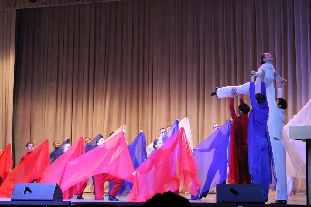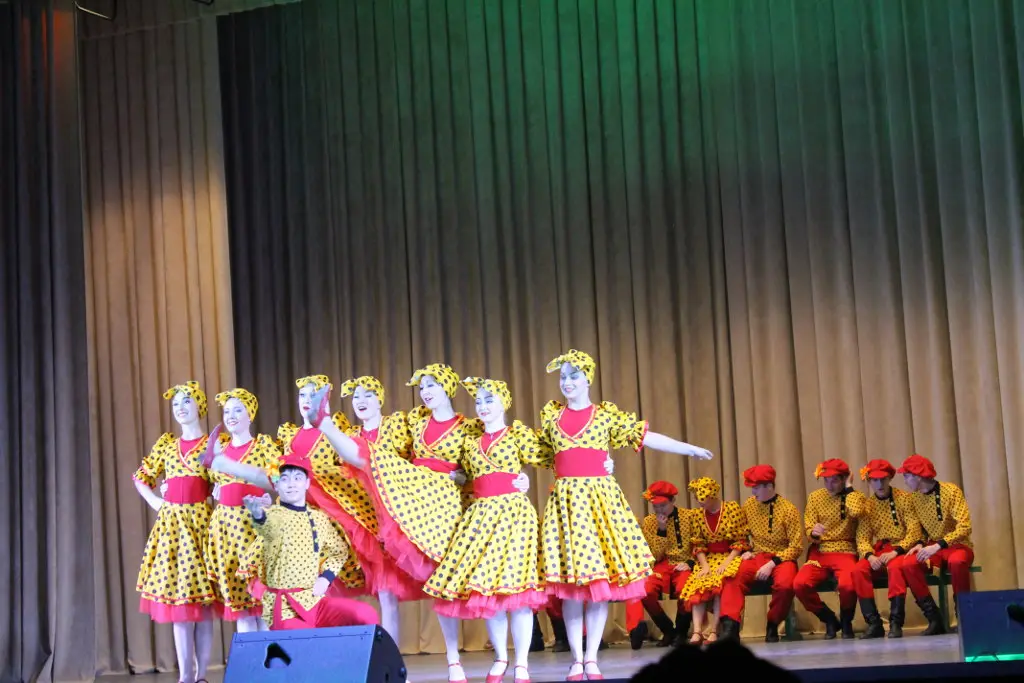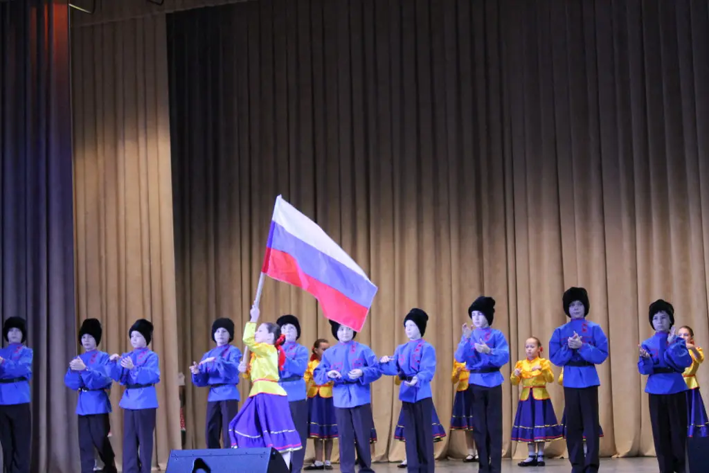 Начался концерт с красочной и фееричной композиции "Триколор", затем продолжился казачьим танцем с российским флагом. После чего на сцене, сменяя друг друга, появлялись различные возрастные группы "Шаяновцев" - от самых маленьких, до выпускников ансамбля. На суд зрителей были представлены танцы народов России: татарские, русские, чувашские, кавказские, кряшен и другие.