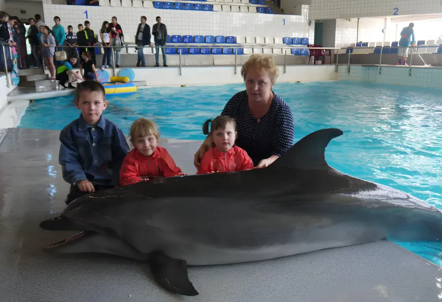 Вся программа была продумана до мелочей, ни минуты не потрачено впустую. Ребят ждало представление в «Дельфинарии» с морскими котиками и дельфинами. В память об этом представлении дети получили фото с дельфином.