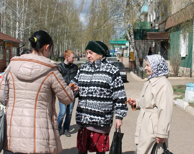 Встречали с поздравлениями жителей города и раздавали георгиевские ленточки психолог Маснавиева Н. А. и социальный педагог Рудакова К.Н. совместно с волонтерами отряда «Чистое небо» и представителями объединения «Молодая Гвардия» (студенты техникума «Нефтехимии и нефтепереработки»). В ходе этой акции ребята создали праздничное настроение на городской «Аллее героев».