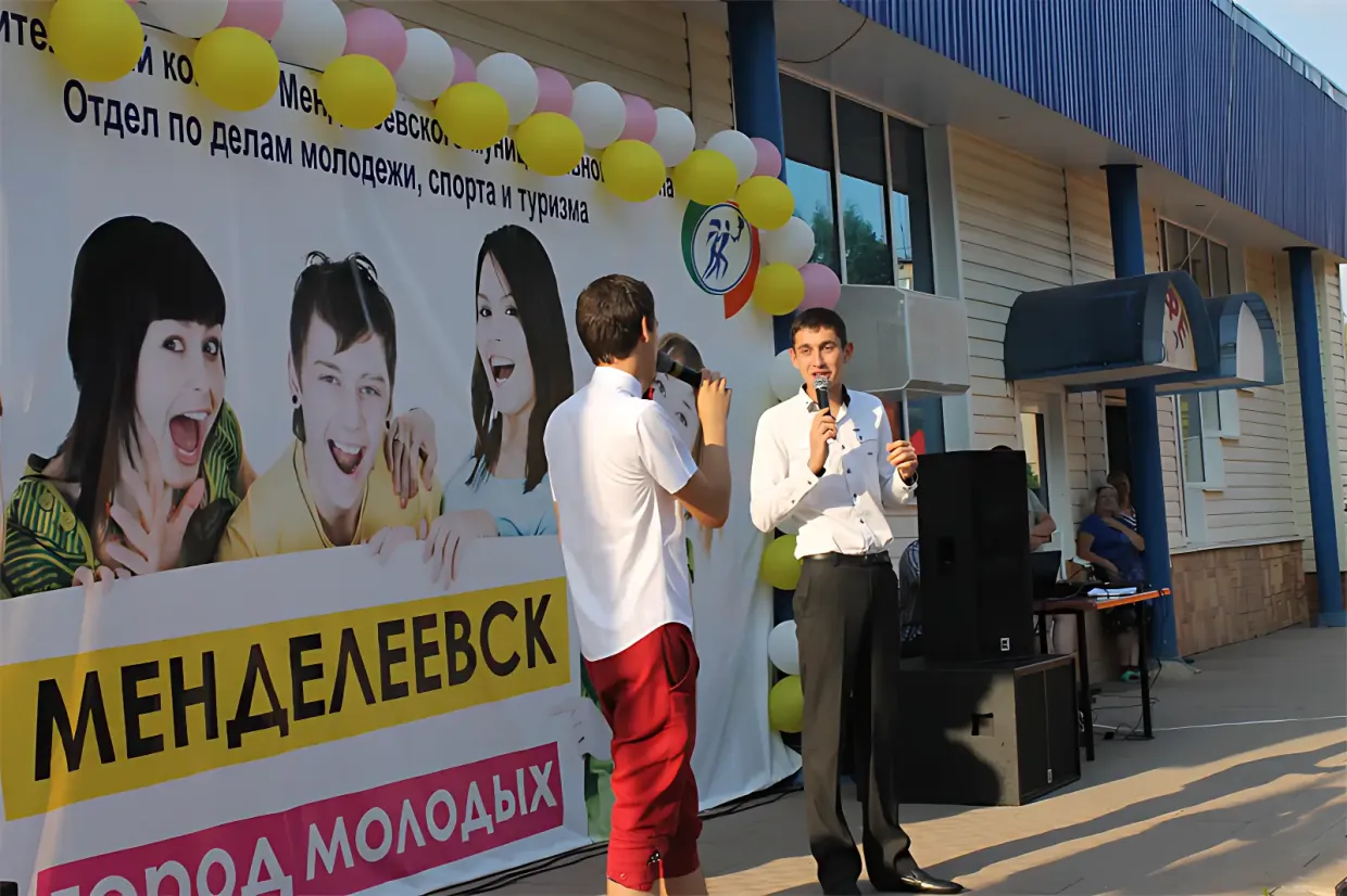 Официальная часть праздника прошла довольно быстро: собравшихся на площади людей поздравил заместитель главы Менделеевского муниципального района Хабибуллин Р. З., после чего были вручены почетные грамоты и премии представителям молодежного движения. В момент вручения грамот, погода напомнила о себе дождем и ветром. В результате, площадь в мгновение ока опустела - народ разбежался под укрытие крыш и навесов.