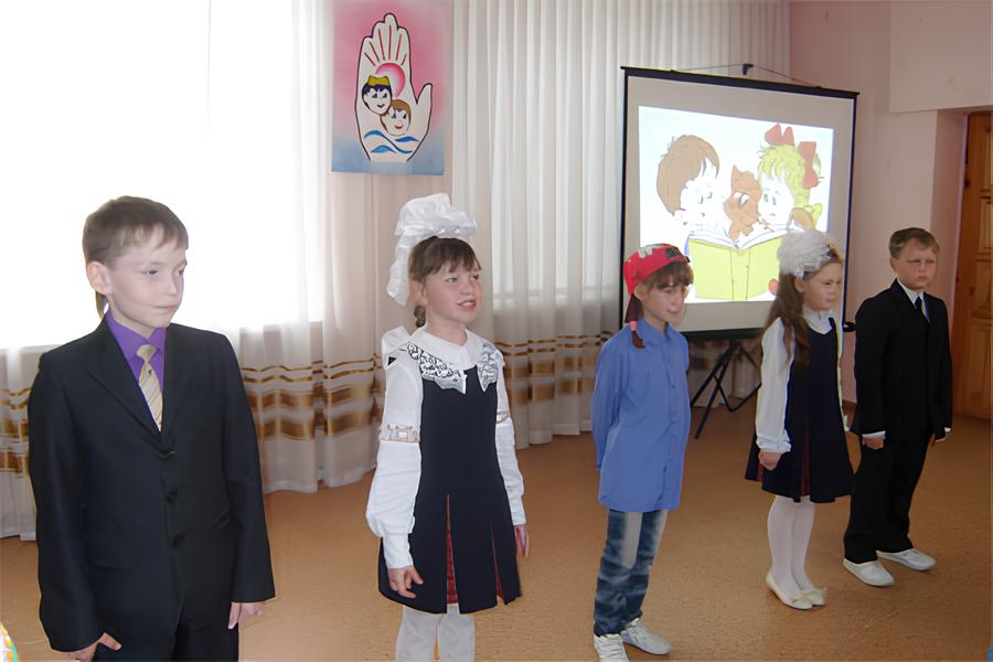 Лучшие читатели детской библиотеки под руководством библиотекаря Галиевой Р. А. подготовили и провели на сцене ДШИ праздник, посвящённый Неделе детской книги в начале апреля для учащихся 1-3 классов городских школ. Было решено повторить его специально для воспитанников приюта, так как они являются большими поклонниками детской периодики и презентаций, регулярно просматриваемых во время походов в библиотеку. Составлением и показом праздничной презентации занималась зав. читальным залом Марготнова И. А.