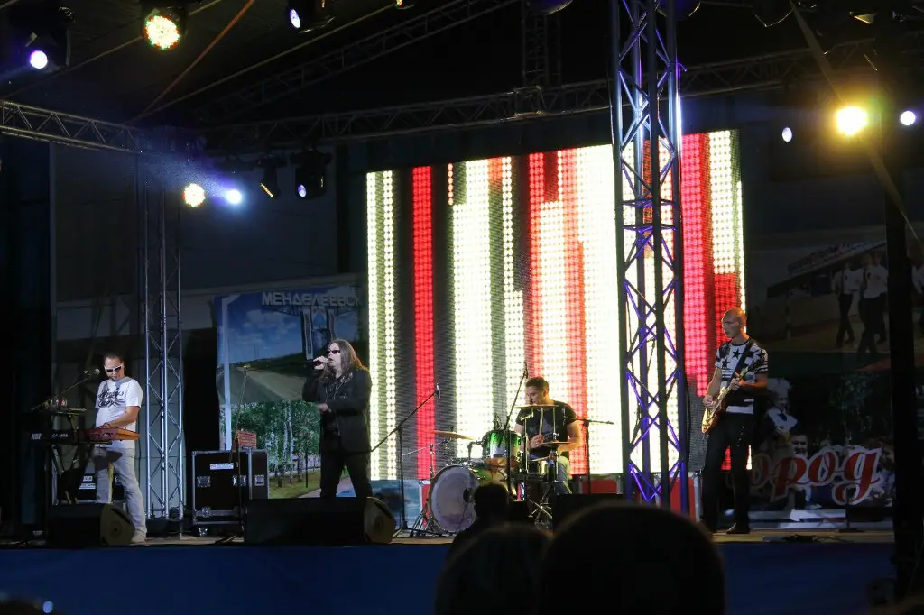 Вечером, после короткой передышки в мероприятиях, на площади Д. И. Менделеева началось основное действие по празднованию Дня города и юбилея образования Менделеевского района. На профессиональной сцене с разноцветными софитами, качественным, мощным звуком и огромным цветным экраном началась концертная программа с участием местных артистов и творческих коллективов, а также приглашенных гостей из города Казани.