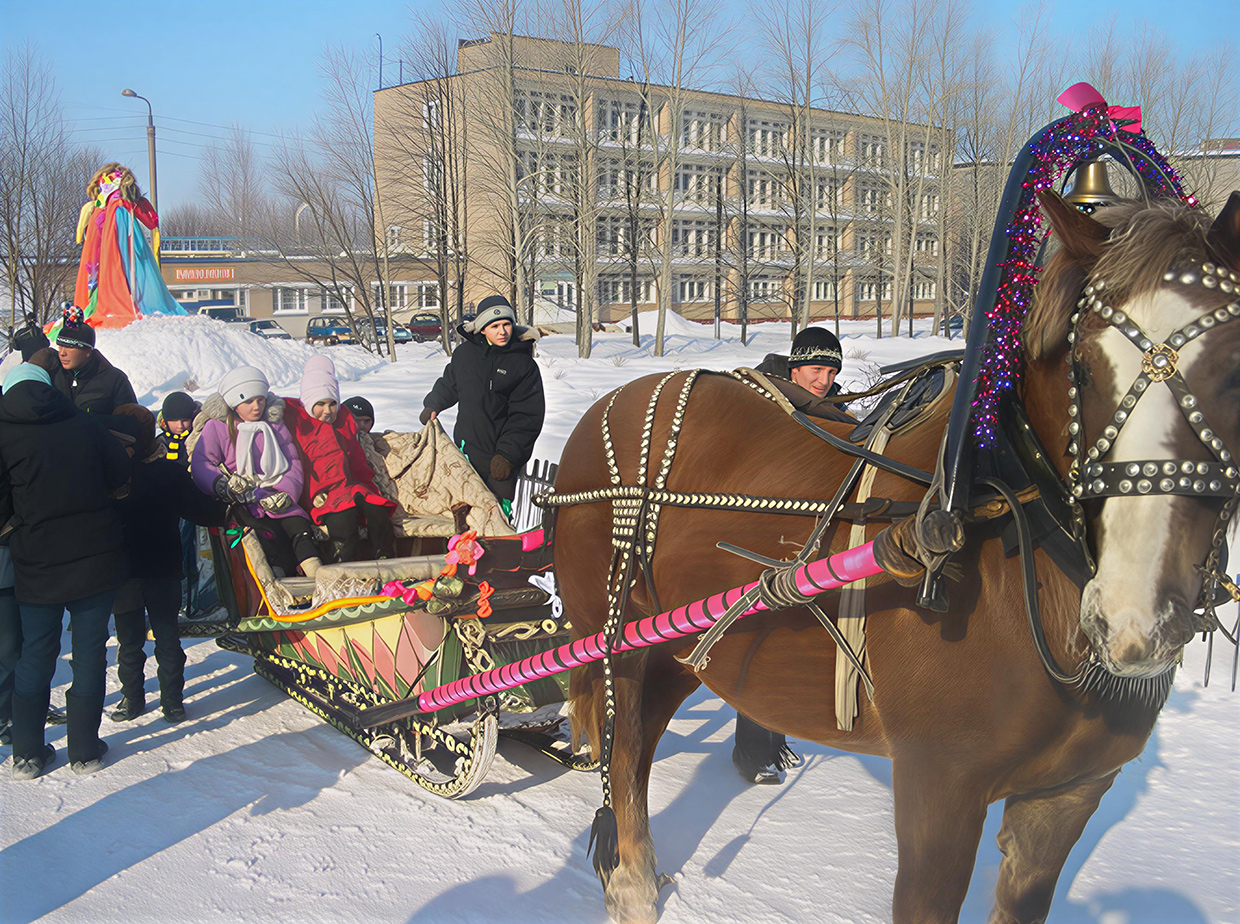 На сцене у дворца культуры, развлекали своими выступлениями хореографические и вокальные коллективы города. На прилежащей территории была организована выездная торговля, аппетитно пахло шашлыками. Детвора развлекалась различными конкурсами и катанием на санных упряжках. Все ждали финала праздника - сжигания чучела замы, которое была настолько нарядным и красивым, что его было даже немного жалко.