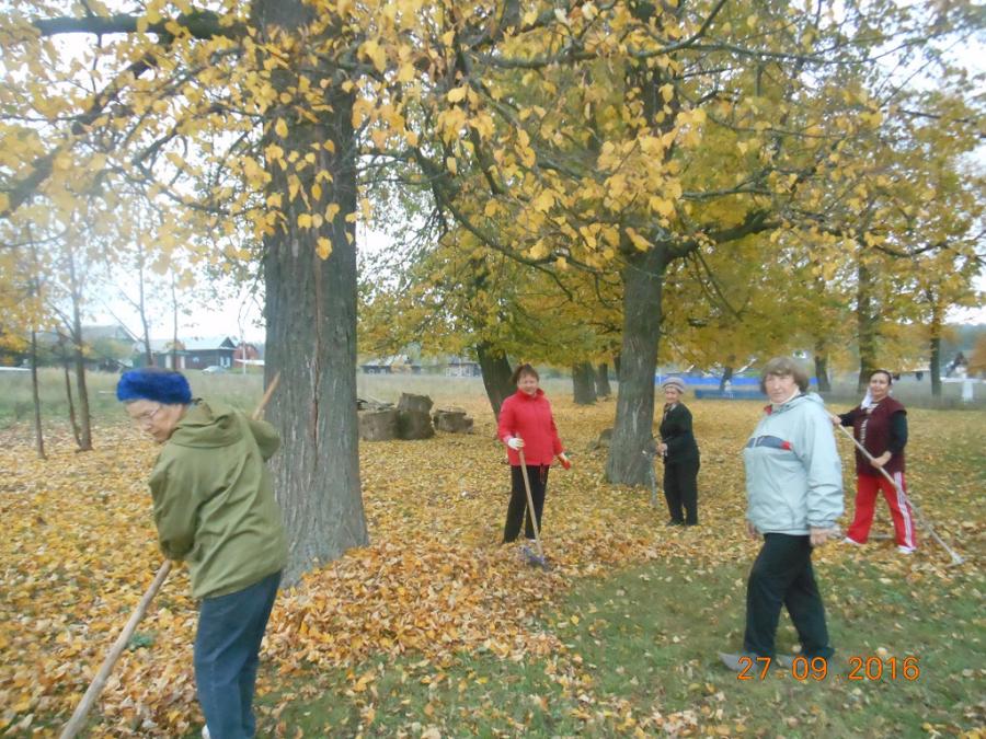 Пенсионеры вдоволь нагулялись по лесу, насладились свежим воздухом, от души порадовались красоте осенней природы. Воспользовавшись случаем, собрали необходимый материал для творческих работ и поделок. Затем вместе с сельчанами приняли участие в трудотерапии, помогли убрать опавшие с деревьев листья вокруг сельского клуба.