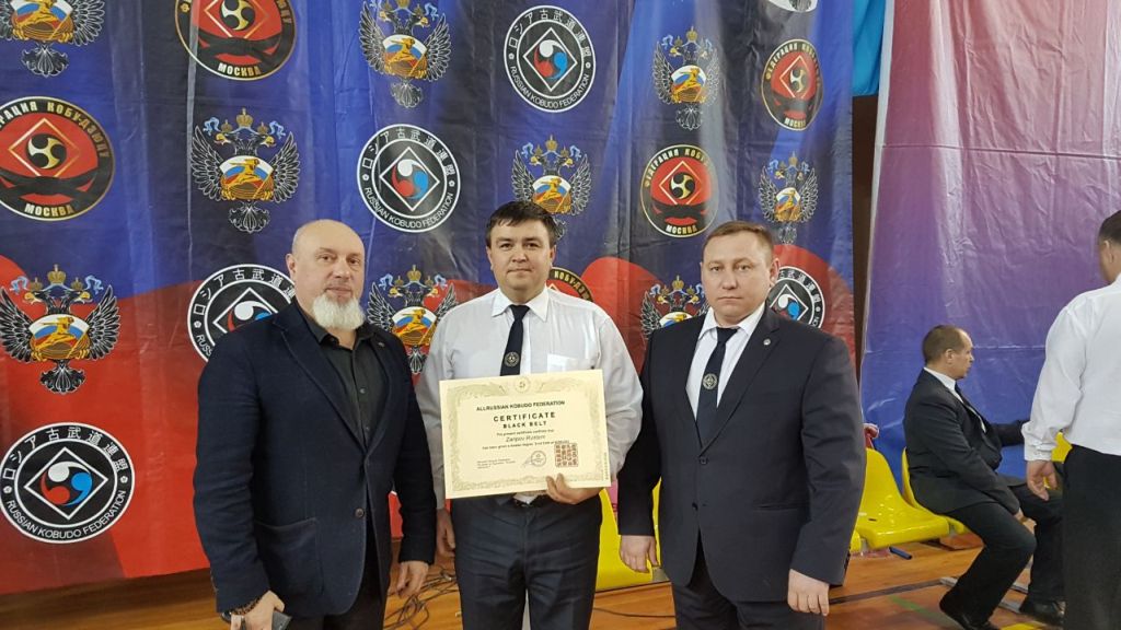 Так же, одному из наших тренеров - Зарипову Рустаму был присвоен 2-Дан черный пояс, который был вручен президентом Всероссийской Федерации Кобудо Кузнецовым Алексеем Николаевичем.