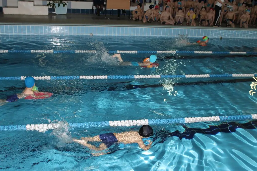 Так как соревновались ребята в различных возрастных категориях, было совершено всего 30 заплывов.