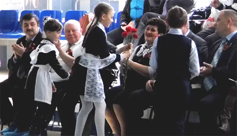Воспитанники комплекса вручили ветеранам цветы и поздравительные открытки.
