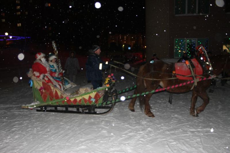 Никто в этот вечер не остался без внимания. Все присутствовавшие на празднике ребятишки получили подарки от ТОС «Альфа», которые вручила председатель Лидия Александровна Маслова. Праздник был в разгаре, когда все услышали звон бубенцов и увидели лошадь, везущую сани с Дедом Морозом и Снегурочкой.