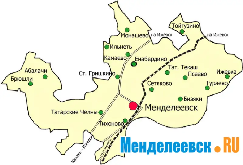 Менделеевский район находится на северо-востоке Республики Татарстан, граничит с Удмуртской Республикой. Входит в Северо-Восточный Прикамский экономический район. Площадь 746,4 км². 14 сельских поселений (советов местного самоуправления) и 1 городское поселение. 35 сельских населённых пунктов. Центр – г. Менделеевск. На 1 октября 2025 численность населения Менделеевского района составляет 30 064 человека/